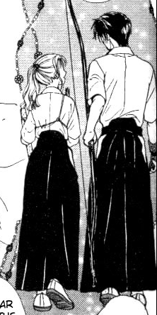 Kyo, the main character's crush, doing Kyudo. His form is so-so if you ask me, but...I also know nothing. Yet. ("So beautiful~")